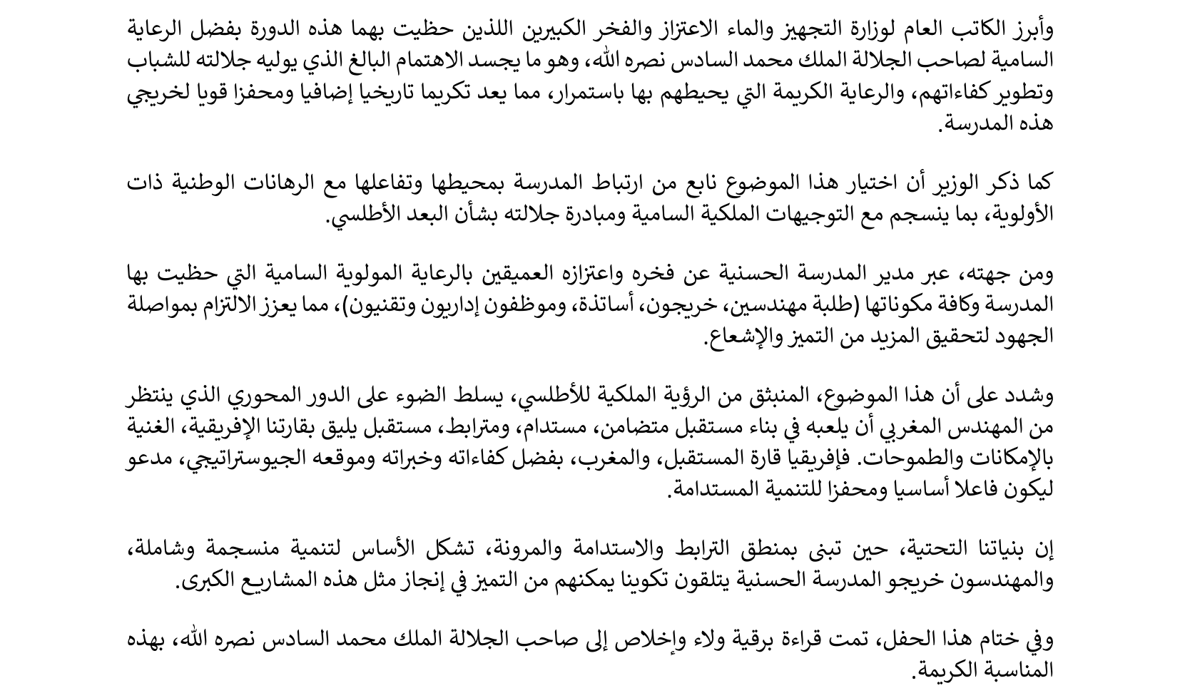 حفل التخرج وتوزيع جوائز التميز لخريجي الدفعة الخمسين من المدرسة الحسنية لألشغال العمومية